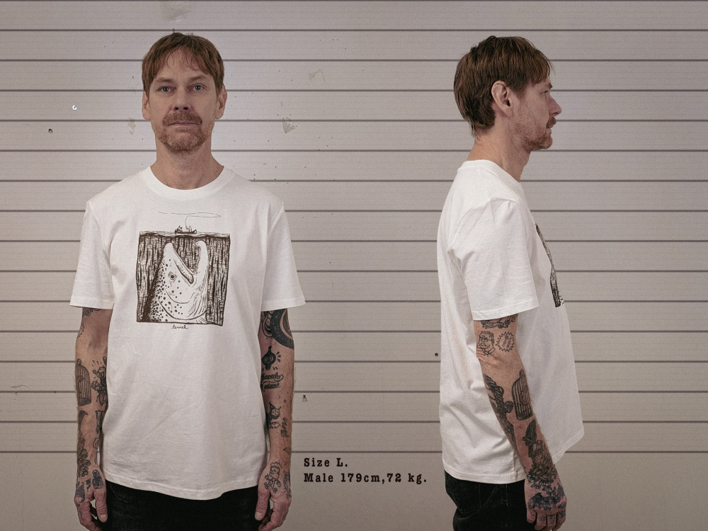 T-shirten är sydd av GOTS-certifierad 100% ekologisk bomull. Vikten är 180g per m2. Det är alltså en medeltjock T-shirt av klassiskt snitt. Passformen är standard. Den går bra att tvätta i 40 grader, helst blandat med all annan tvätt på samma gång. Då får tröjan mest patina och riskerar inte att se ny ut. Övriga märkningar: Fair Wear och Vegan Approved.